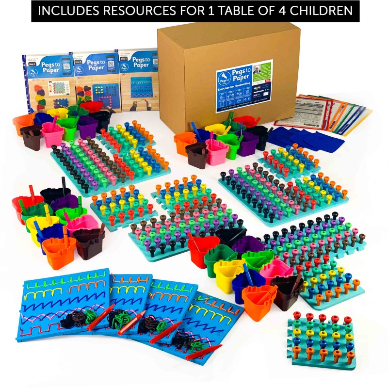 The all-in-one early years resource designed to establish the fundamental skills which underpin handwriting and literacy, build solid foundations and develop key fine motor skills. During this crucial early stage of learning, Pegs to Paper helps to counteract today’s heavy use of tablets and screens with structured, yet fun hands-on activities. Targeted for ages 3-5 years, plus extension SEN activities for ages 5+ years. Includes resources for 1 table of 4 children. Recommended quantity: 1 x box for a nursery group or 1 x box per school classroom.